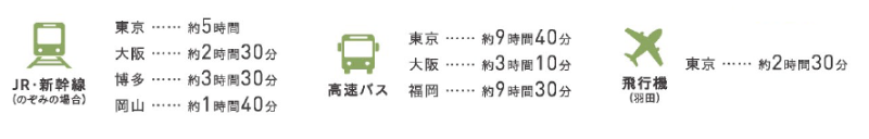 JR高徳線が6駅、「ことでん」が2駅ありますが、主な移動手段は車になります。道路は舗装率も高く整備されているため、渋滞もほとんどなく、ストレスなく運転できます。高速道路のICが3か所、高速バス停が2か所あり、日本一小さな香川県内であれば1時間ほどで横断できます。