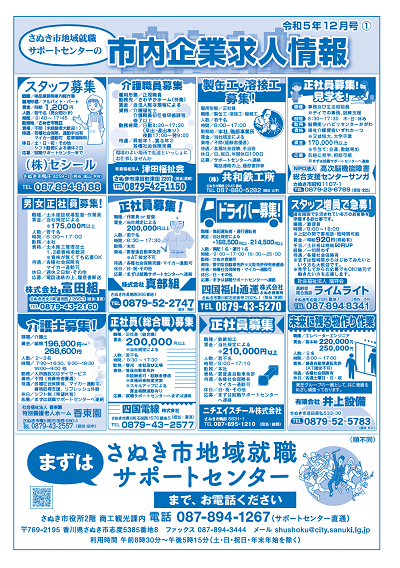 令和5年12月さぬき市地域就職サポートセンターの市内企業求人情報の1枚目のチラシ (PDFファイル: 1.2MB)